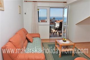 Apartmani Pivac / 55 m2 / 1. kat / nalazi se u zapadnom dijelu Makarske u blizini poznatog hotela  "Dalmacija", udaljeni su svega 50 m od od mora i predivne šljunčane plaže,  blizini plaže, restorana, trgovina, caffe barova i zabavnih sadržaja čini ih idealnim za goste koji u Makarsku dolaze avionom. Raspolaže s 3 apartmana za 2 + 2 osobe.