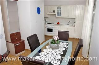 Ferienwohnung SANJA   / 90 m2 / 4. Etage / im zentralen Teil von Makarska, nur 100 m vom Zentrum und 250 m vom schönen Sandstrand entfernt. Direkt am Meer und immer sonnig. Der Balkon bietet einen herrlichen Blick auf das Meer und die benachbarten Inseln Brac und Hvar. Die Wohnung besteht aus 2 Doppelzimmer + 1 jednokrevetnaspavaća + Wohnzimmer + Küche im Wohnzimmer + Bad / WC und ein separates WC und einen Balkon und Flur.