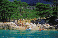 Makarska:Makarskiej znajduje się 65 km na południe od Splitu, stolicy Dalmacji Środkowej. Dzięki lokalizacji i wielkości miasta Makarska jest najważniejszym miejscem w znanym "Riwiery Makarskiej" Miasto leży w dobrze chronione zatoki poniżej zboczu góry, teraz park krajobrazowy. Miasto składa się z historycznych i nowych części, które są nowocześnie wyposażone w hotelach, domach prywatnych, restauracji, barów, itp. Makarska Goście mogą korzystać z pięknych piaszczystych plaż i śródziemnomorskiej roślinności lasów oliwne i sosny. Makarska oferuje doskonałą kuchnię na bazie ryb, wina i oliwy, typowe dla regionu Dalmacji, bogate zaplecze sportowe warto wspomnieć, zwłaszcza sportów wodnych i nurkowania. Dla miłośników przyrody, za Makarska jest zboczu parku, najwyższy szczyt w środkowej części Dalmacji, gdzie wycieczki.